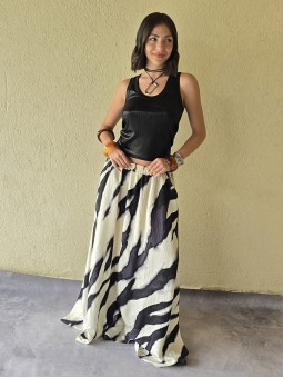$54.000 ABONANDO EN EFECTIVO EN LOCAL Falda súper amplia,larga de fibrana de seda, con elástico en cintura y bolsillos. * Consultá las medidas abajo en la descripción.