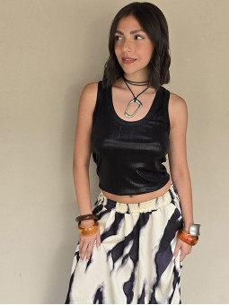 $29.000 ABONANDO EN EFECTIVO EN LOCAL Blusa sin mangas, de gasa crush opaca estampada,con cuello chomba. * Consultá las medidas abajo en la descripción.