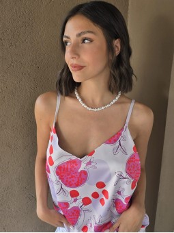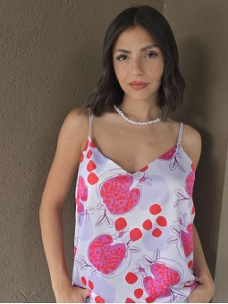 $21.900 ABONANDO EN EFECTIVO EN LOCAL Blusa de lino con estampa en negro, con bretel ancho, corte suelto. * Consultá las medidas abajo en la descripción.