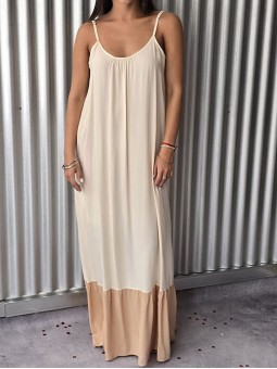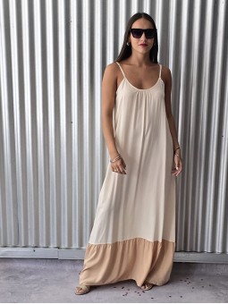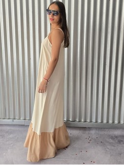 -15% OFF ABONANDO CON TRANSFERENCIA Vestido largo, de poplin combinado, con breteles regulables. * Consultá las medidas abajo en la descripción.