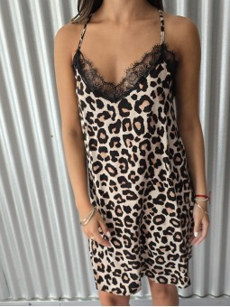 -15% OFF ABONANDO CON TRANSFERENCIA Vestido corto estampado de seda crush, con puntilla en escote y espalda. * Consultá las medidas abajo en la descripción.
