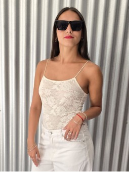 -15% OFF ABONANDO CON TRANSFERENCIA Body de encaje con forrería interna a contratono y breteles elásticos. * Consultá las medidas abajo en la descripción.