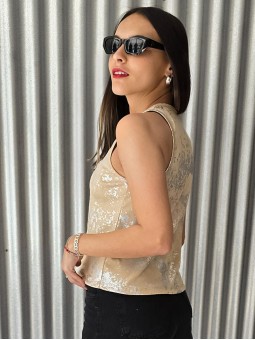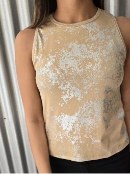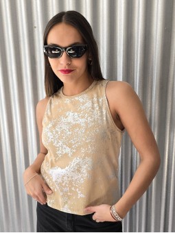 -15% OFF ABONANDO CON TRANSFERENCIA Musculosa de micromorley de algodón con foil plateado. * Consultá las medidas abajo en la descripción.
