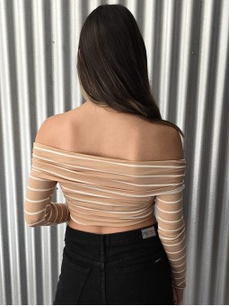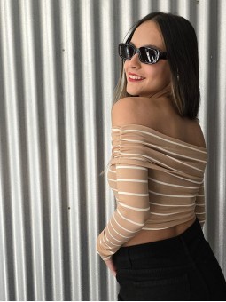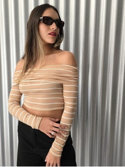 - 15% EXTRA ABONANDO CON TRANSFERENCIA Top off shoulder rayado, de modal soft. * Consultá las medidas abajo en la descripción.