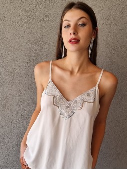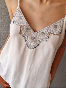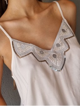 - 15% OFF ABONANDO CON TRANSFERENCIA Blusa bretel fino de poplin con bordado delantero. * Consultá las medidas abajo en la descripción.