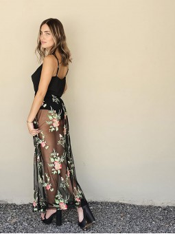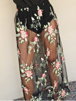 10% OFF ABONANDO CON TRANSFERENCIA Falda larga de gasa cristal con bordado. Con cullote incorporado de lycra y elástico en cintura. * Consultá las medidas abajo en la descripción.