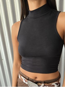 $9.265 ABONANDO CON TRANSFERENCIA Top de modal sin mangas, con cuello halter. * Consultá las medidas abajo en la descripción.