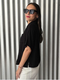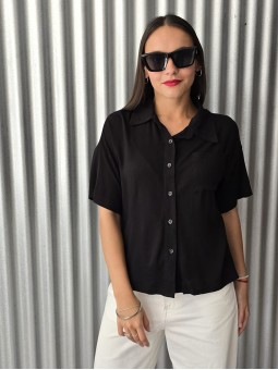 Camisa manga corta de lino con bolsillo. * Consultá las medidas abajo en la descripción.