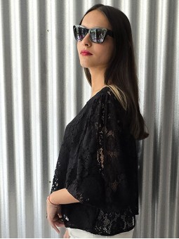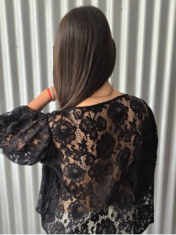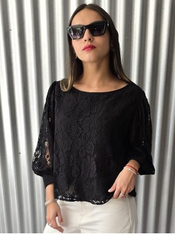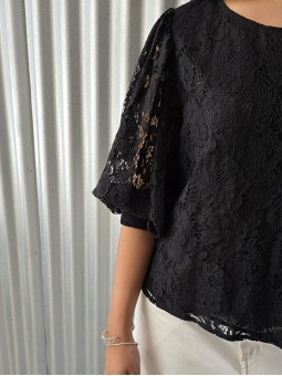 - 15% EXTRA ABONANDO CON TRANSFERENCIA Blusa de encaje guipure importado, con manga globo 3/4. * Consultá las medidas abajo en la descripción.