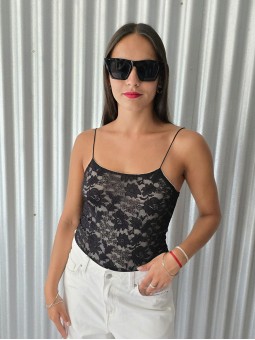 -15% OFF ABONANDO CON TRANSFERENCIA Body de encaje con forrería interna a contratono y breteles elásticos. * Consultá las medidas abajo en la descripción.