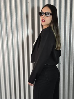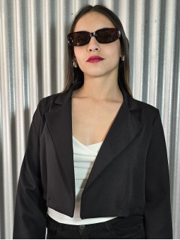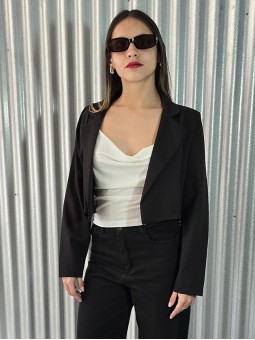 -15% OFF ABONANDO CON TRANSFERENCIA Blazer crop (a la cintura) de crepe sastrero con hombreras. * Consultá las medidas abajo en la descripción.