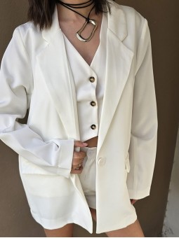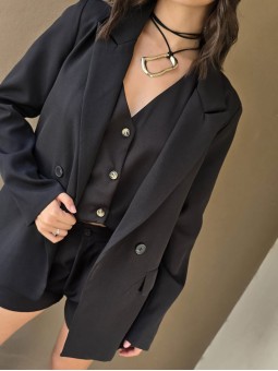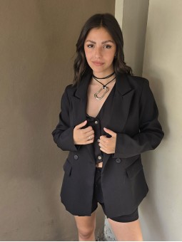 Blazer de crepe sastrero con forrería interna y cruzado en frente con botones. * Consultá las medidas abajo en la descripción.