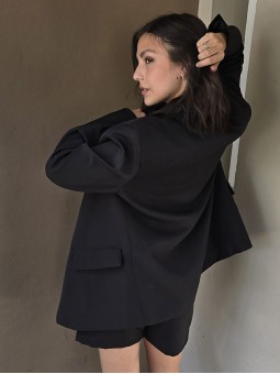 - 15% EXTRA ABONANDO CON TRANSFERENCIA Blazer sastrero oversize, forrado y con hombreras. Con manga 3/4 con boton en el puño. * Consultá las medidas abajo en la descripción.