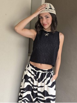10% OFF ABONANDO CON TRANSFERENCIA Falda larga de gasa cristal con bordado. Con cullote incorporado de lycra y elástico en cintura. * Consultá las medidas abajo en la descripción.