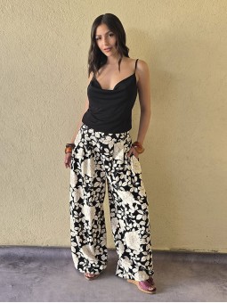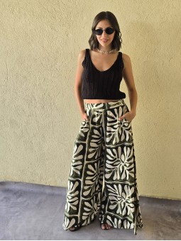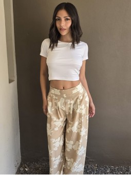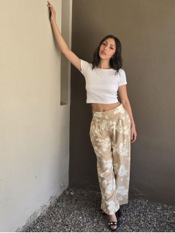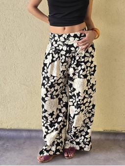 $39.900 ABONANDO EN EFECTIVO EN LOCAL Pantalon pallazo de lino estampado, con pinzas en delantero y elastico en cintura posterior. Tiene bolsillos. * Consultá las medidas abajo en la descripción.