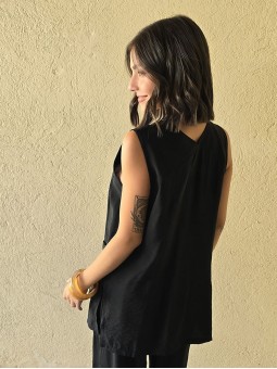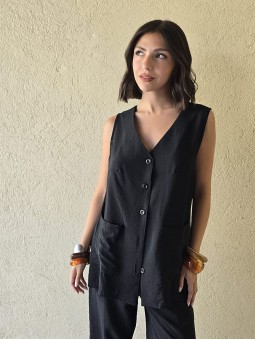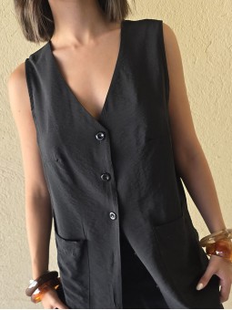 $35.900 ABONANDO EN EFECTIVO EN LOCAL Chaleco sastrero de crepe con cruce en espalda y botón en delantero. * Consultá las medidas abajo en la descripción.