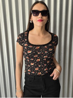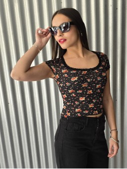 $9.000 ABONANDO EN EFECTIVO EN EL LOCAL $11.000 ABONANDO CON TRANSFERENCIA Remera escote cuadrado de género hawai, con mangas cortas. * Consultá las medidas abajo en la descripción.