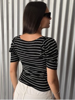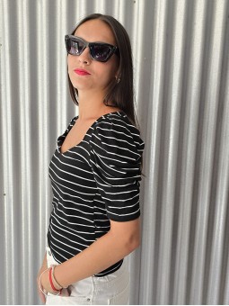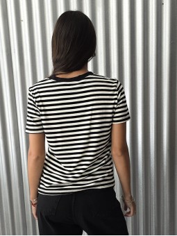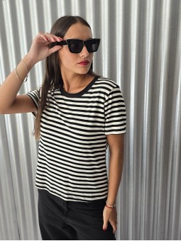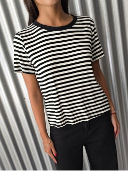 $12.750 ABONANDO CON TRANSFERENCIA Remera manga corta, de ribb de morley rayado. * Consultá las medidas abajo en la descripción.