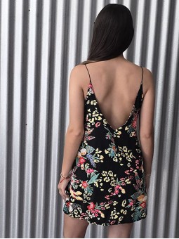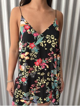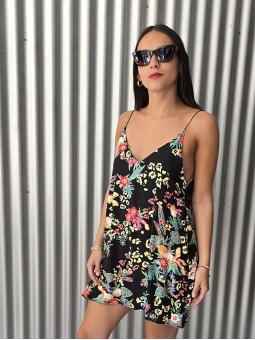 -15% OFF ABONANDO CON TRANSFERENCIA Vestido corto de poplin estampado, con breteles finos. * Consultá las medidas abajo en la descripción.