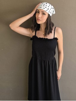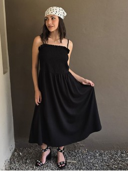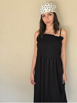 $49.900 ABONANDO EN EFECTIVO EN LOCAL Vestido en crepe de bambula, con breteles finos ajustables y bustier panal de abeja elastizado. * Consultá las medidas abajo en la descripción.