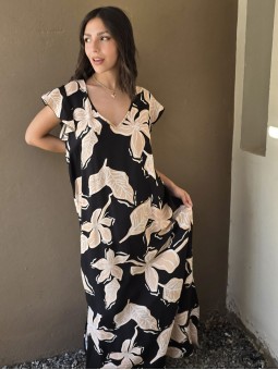 $49.900 ABONANDO EN EFECTIVO EN LOCAL Vestido largo estampado, de seda crush, con cuello V y manga con volados. * Consultá las medidas abajo en la descripción.