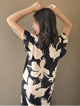 $49.900 ABONANDO EN EFECTIVO EN LOCAL Vestido largo de modal soft, con cuello V y mangas cortas. Corte amplio, oversize, con tajos inferiores y bolsillos. * Consultá las medidas abajo en la descripción.