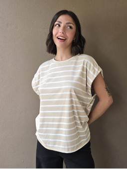 Blusa de bambula de algodón, con escote V y botones en delantero.