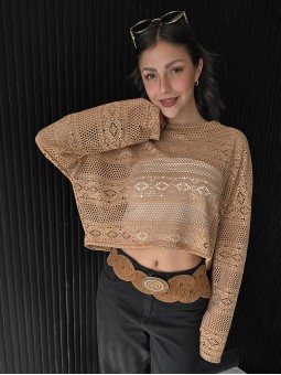 Vestido largo de red de lurex con brillos , sin mangas, con tajos a los costados. No incluye el top ni el short.