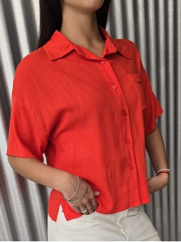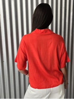 Camisa de gasa con textura, con botones delanteros. El puño tiene detalles de tres botones y el largo delantero es levemente mas larga que el posterior.