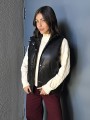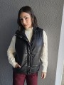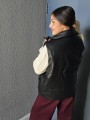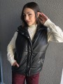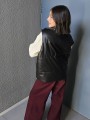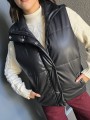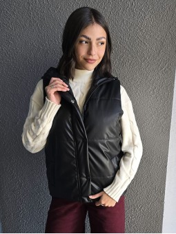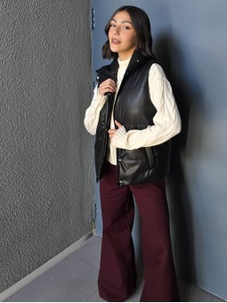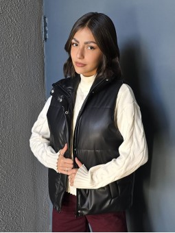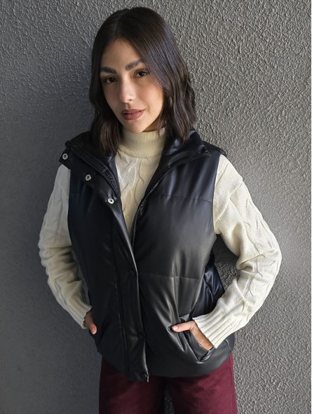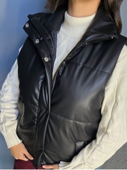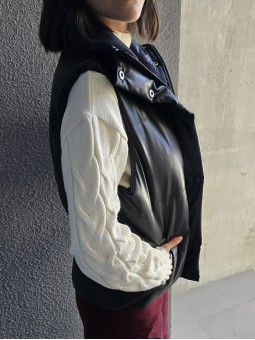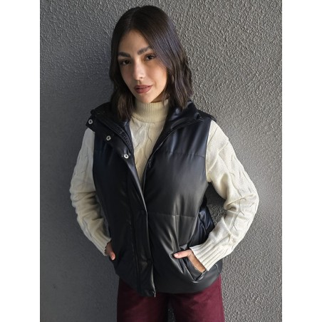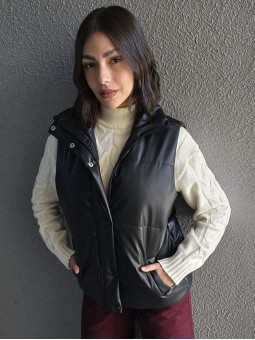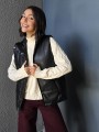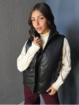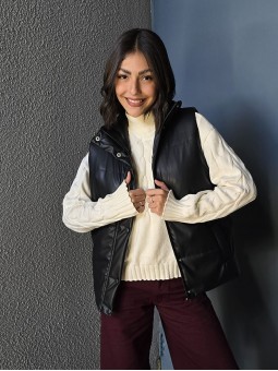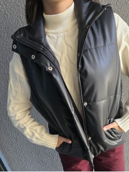 Chaleco de ecocuero premium, corte oversize, con broches a presión, cierre delantero y bolsillos.