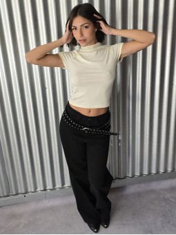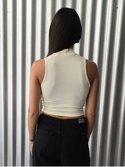 Top halter de ribb de lycra, con bordado de estrella en el frente.