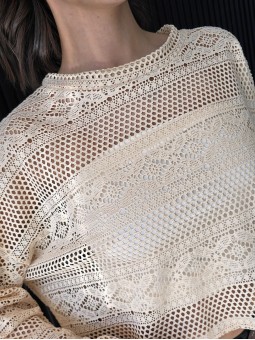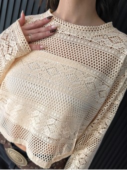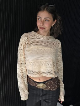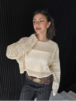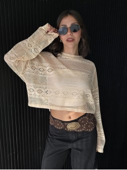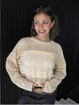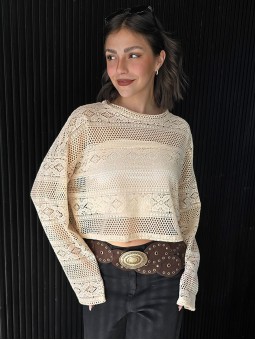 Sweater calado mangas largas, corte oversize. No incluye el top que esta debajo.
