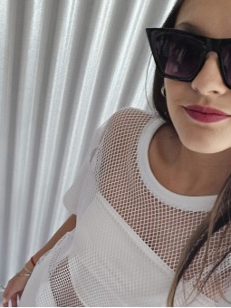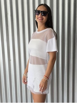 Sweater calado mangas largas, corte oversize. No incluye el top que esta debajo.