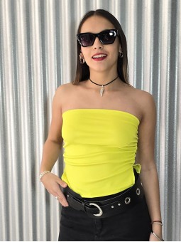 Top de microfibra irregular con detalle de hebilla en el hombro.
