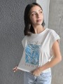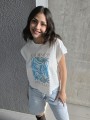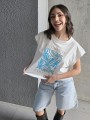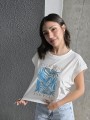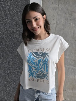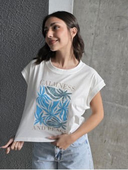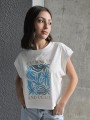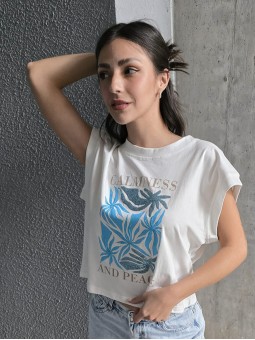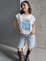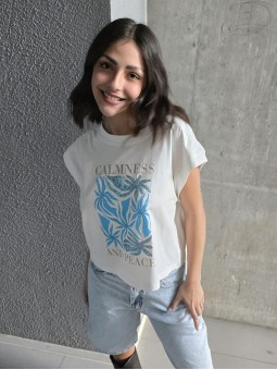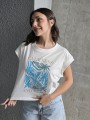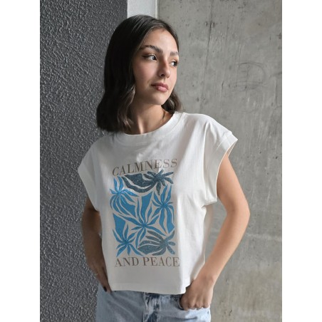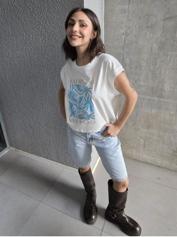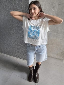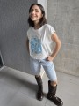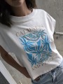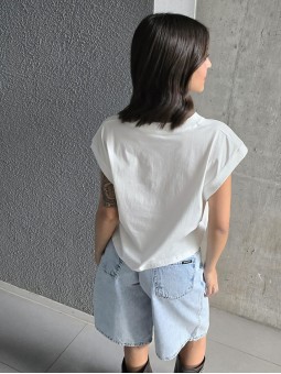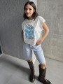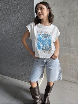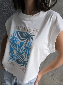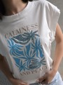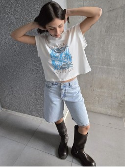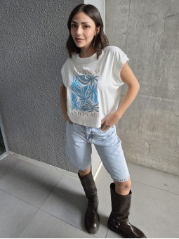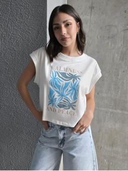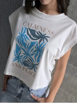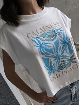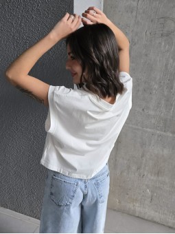 Remera importada de algodón premium corta, sin mangas, con estampa con brillos.