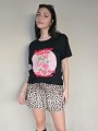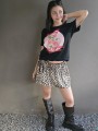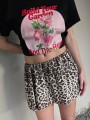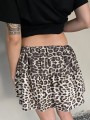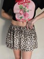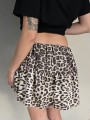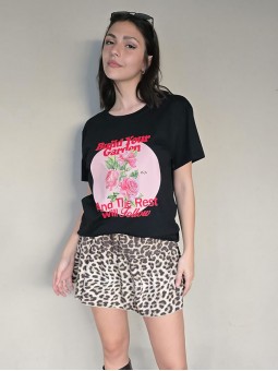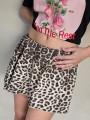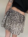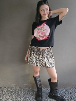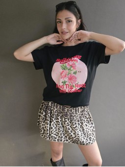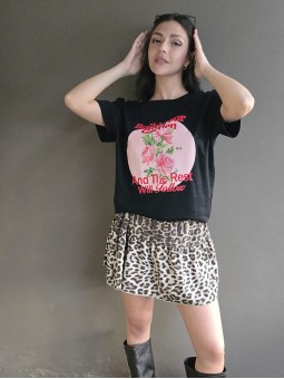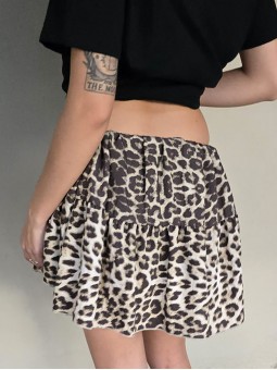 Minifalda de fibrana satinada estampada, con recorte y frunces y elástico en cintura.