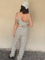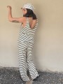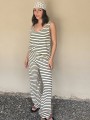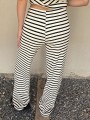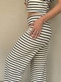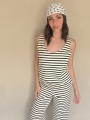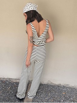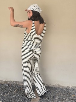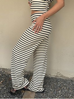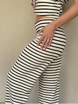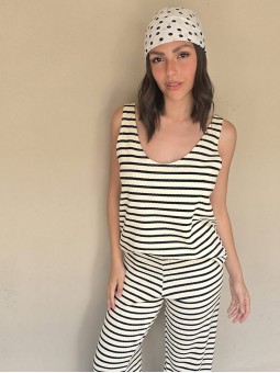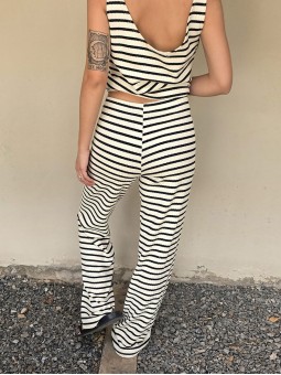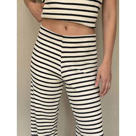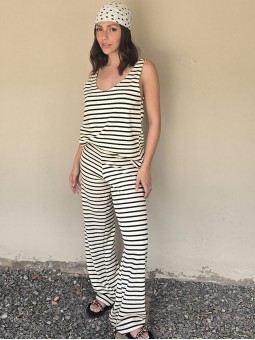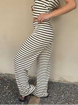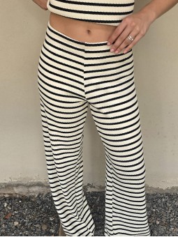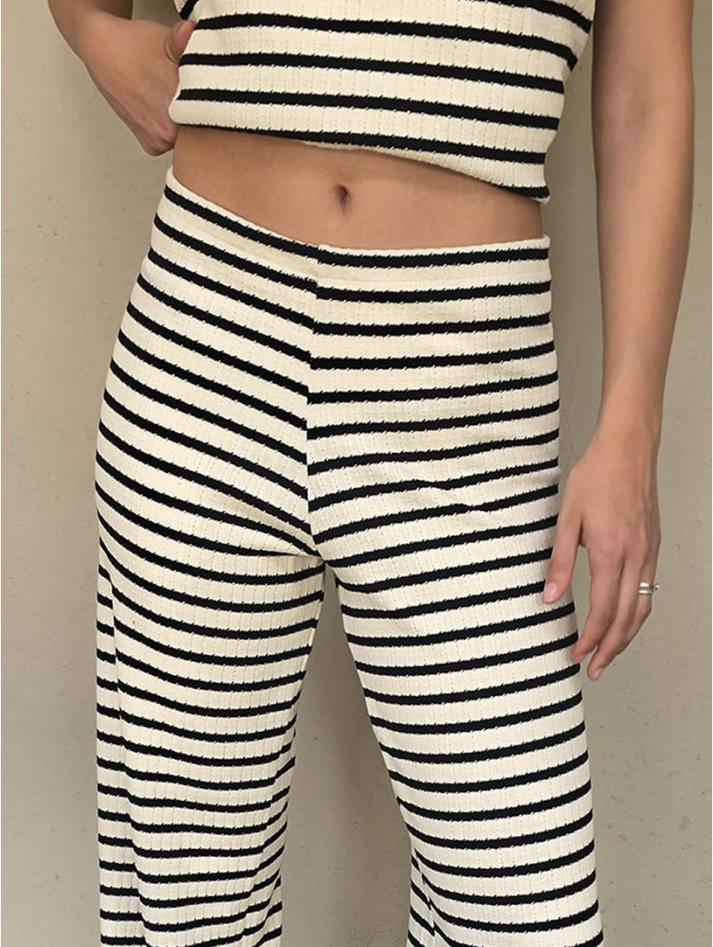 Pallazo tejido de hilo de algodón combinada a rayas negras.