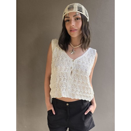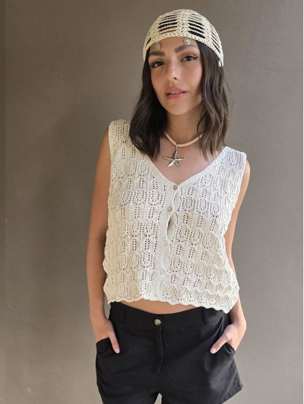 Musculosa tejida importada, con botones en el delantero.
