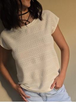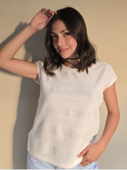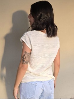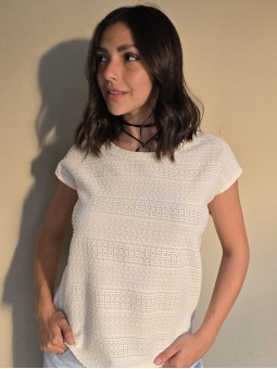 Remera de guipure manga corta.