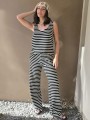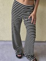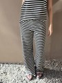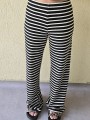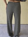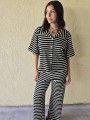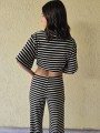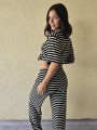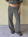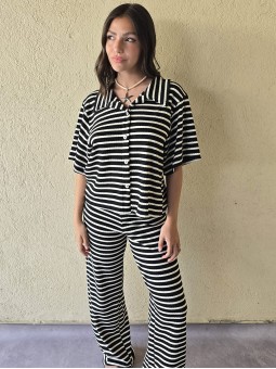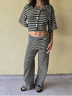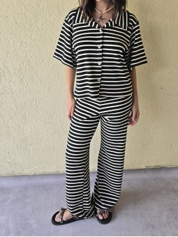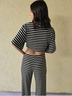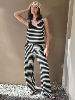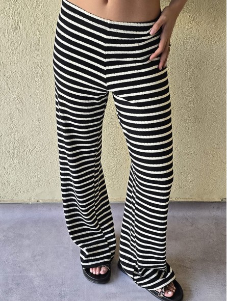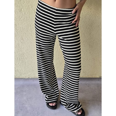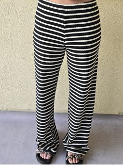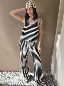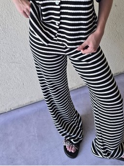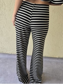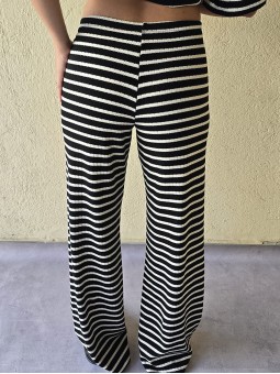Pallazo tejido de hilo de algodón combinada a rayas negras.
