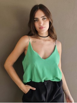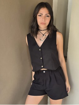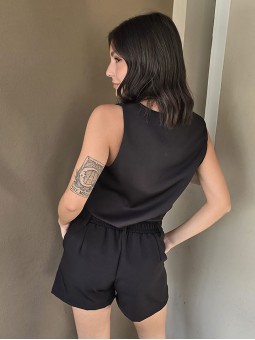 Short de crepe sastrero con pinzas en delantero y elástico en cintura. Con bolsillos laterales y presilla pasacinto.