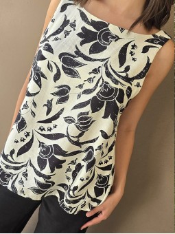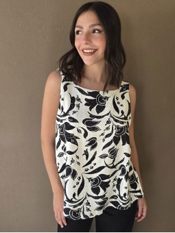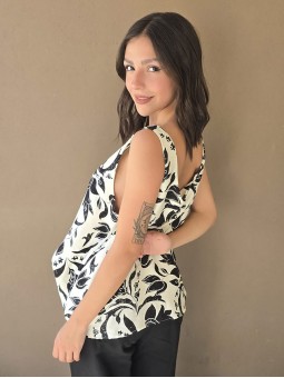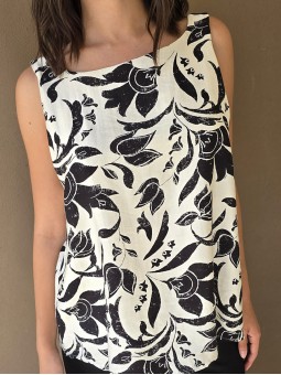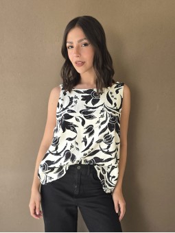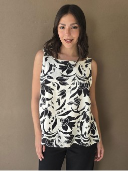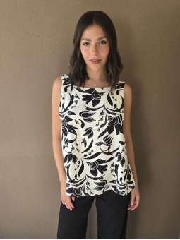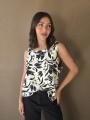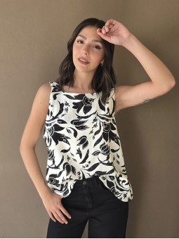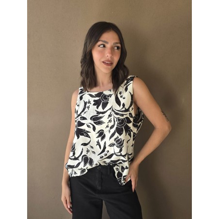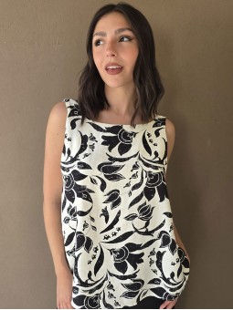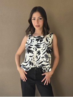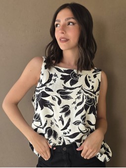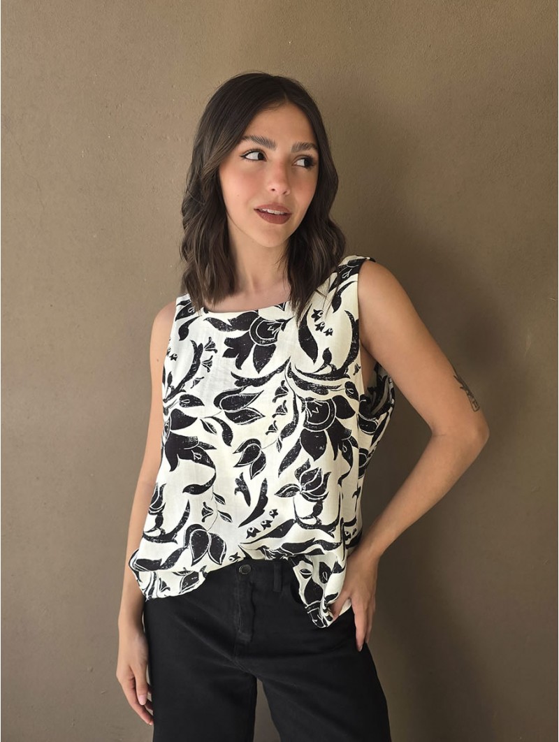 Blusa de lino estampada, con bretel ancho y escote en espalda.