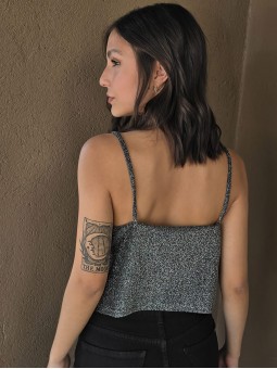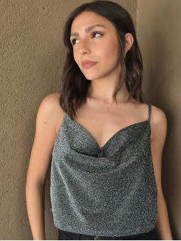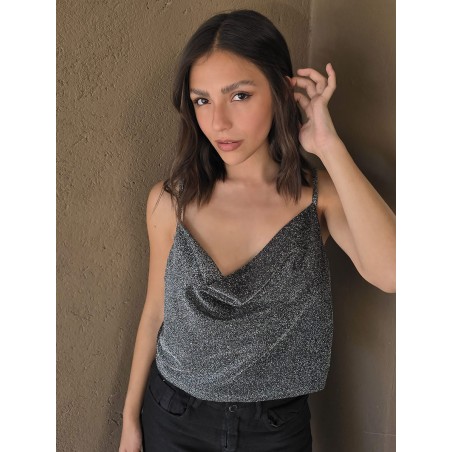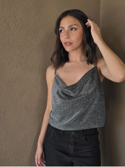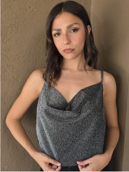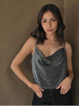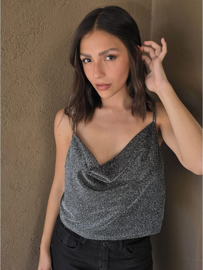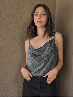 Top de lurex con cuello volcado.