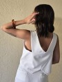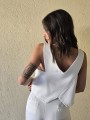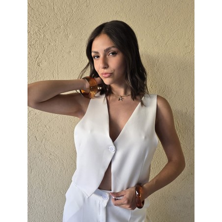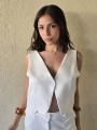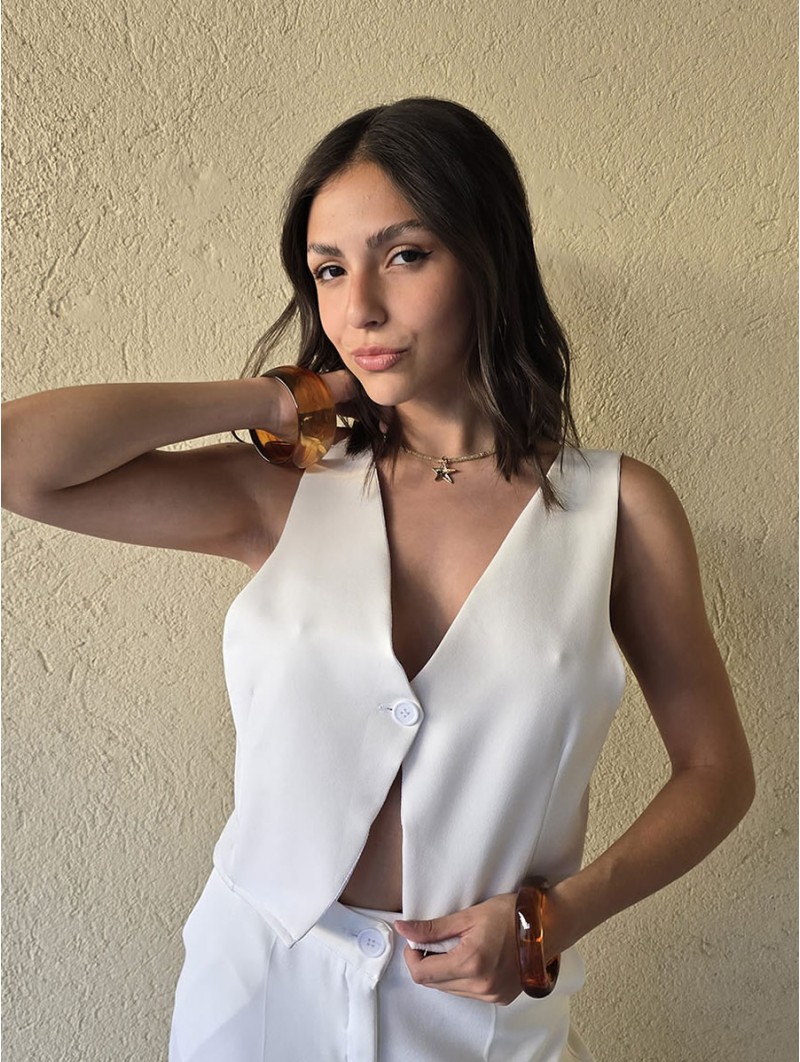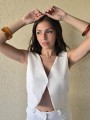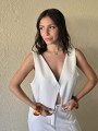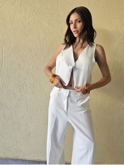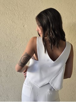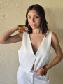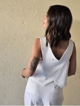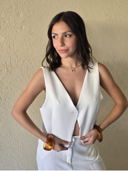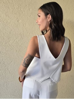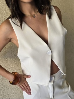 Chaleco sastrero de crepe con cruce en espalda y botón en delantero.