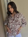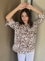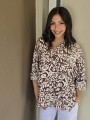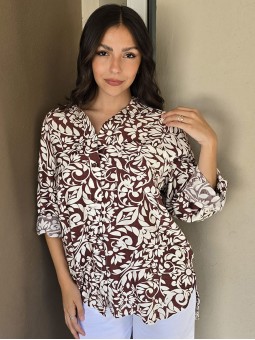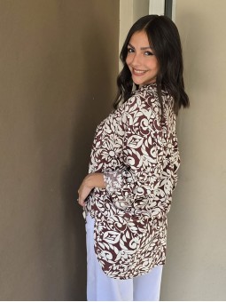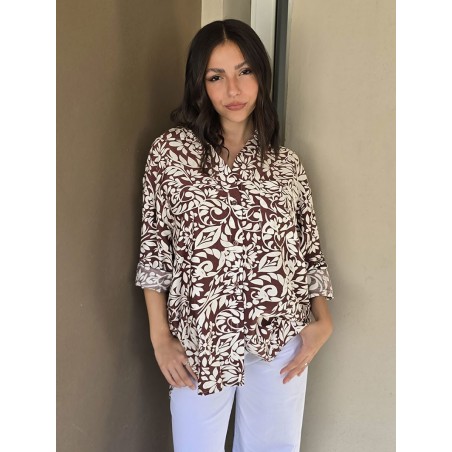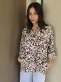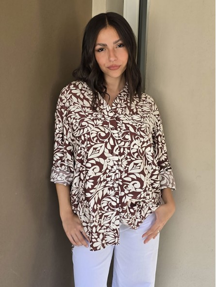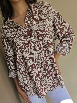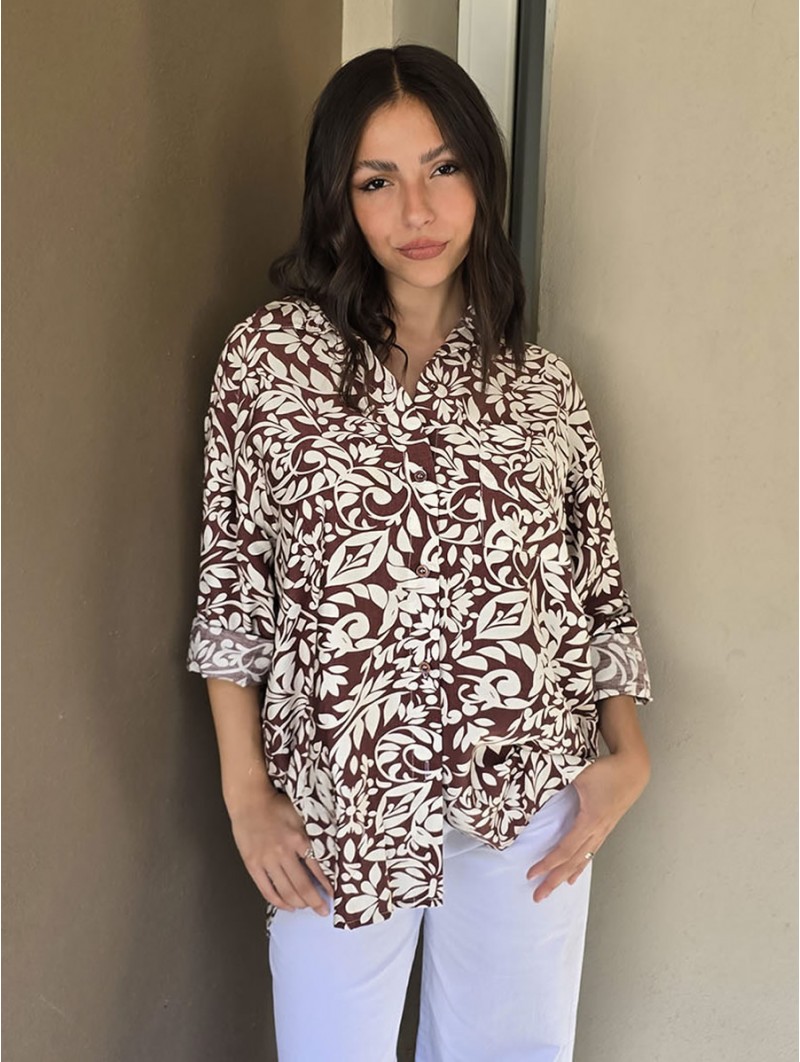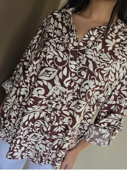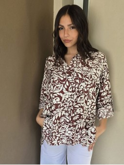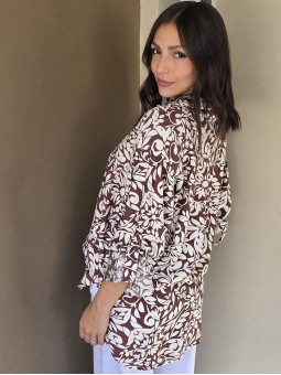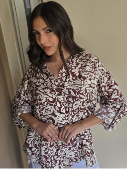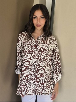 Camisa de lino estampada, con mangas largas y botón para arremangarlas.