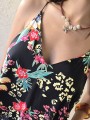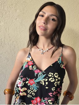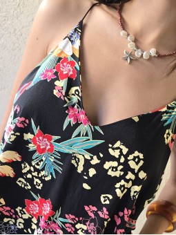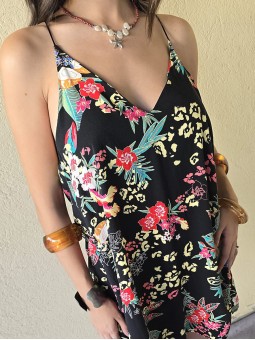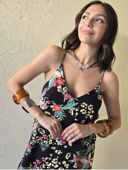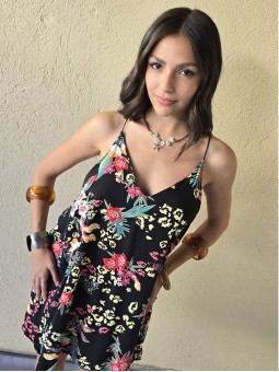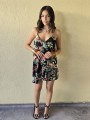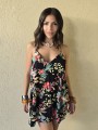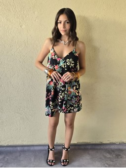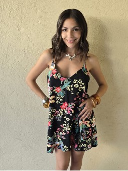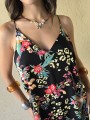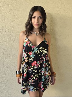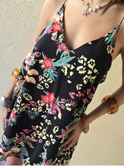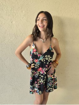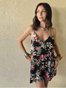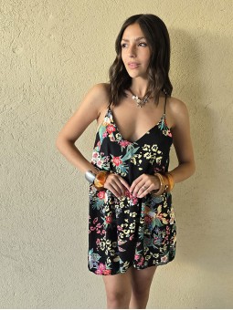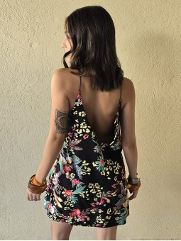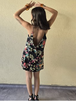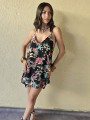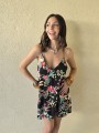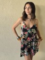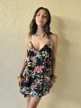Vestido corto de poplin estampado, con breteles finos.