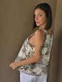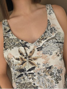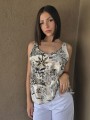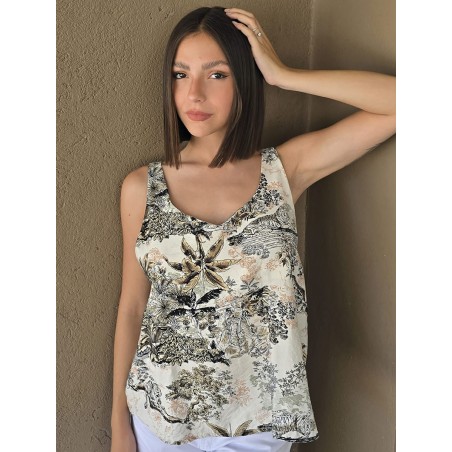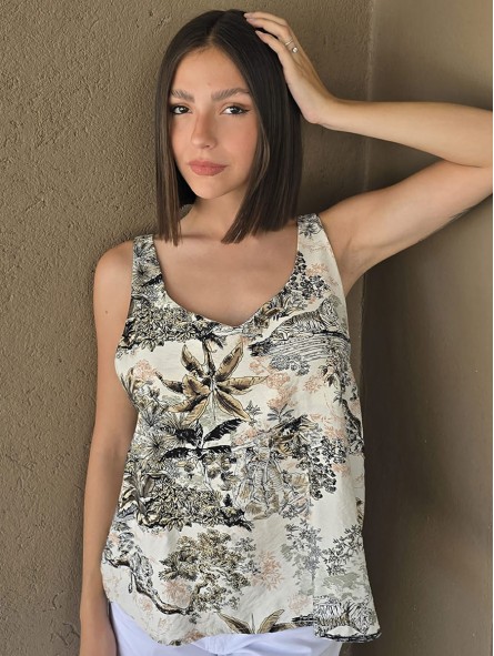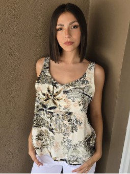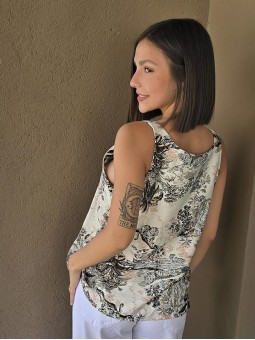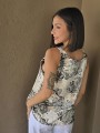 Blusa estampada de gasa crush opaca, con cuello V.