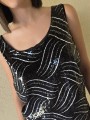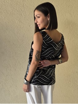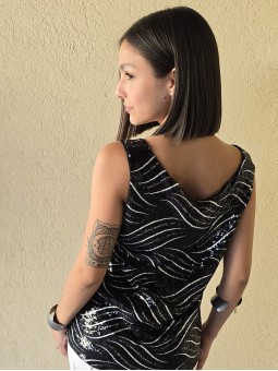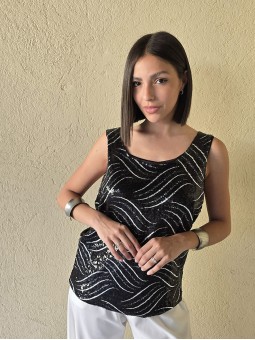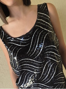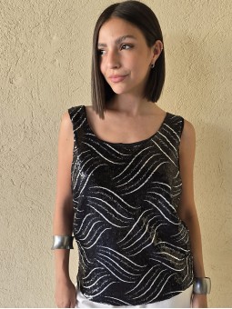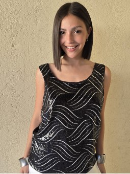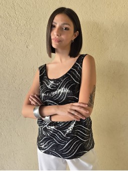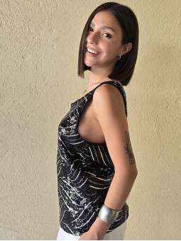 Musculosa bordada con lentejuelas bordadas y forrería interna.