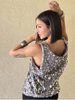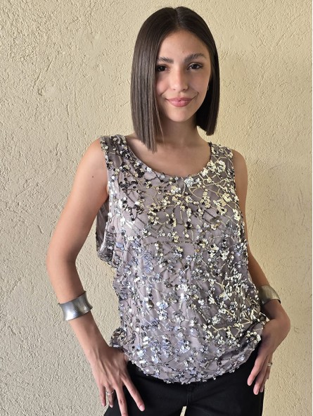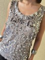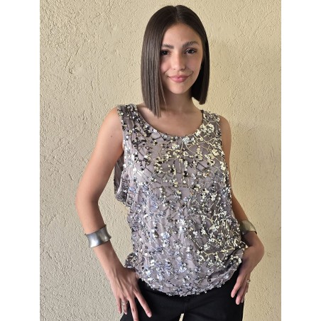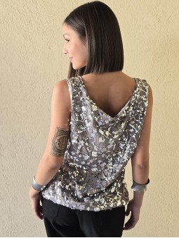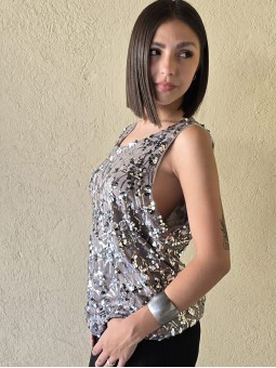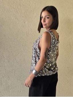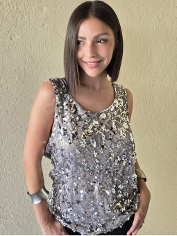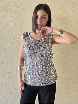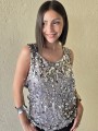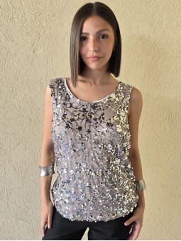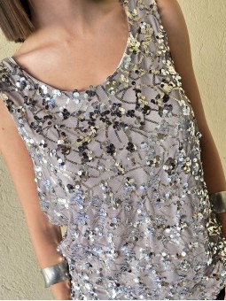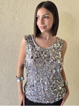 Musculosa importada, con lentejuelas bordadas y forrería interna.