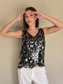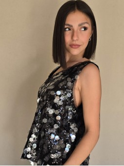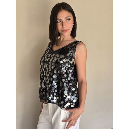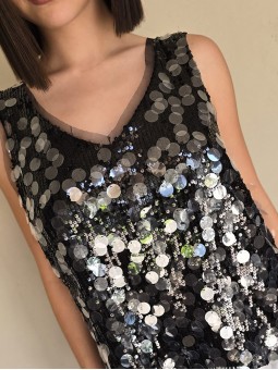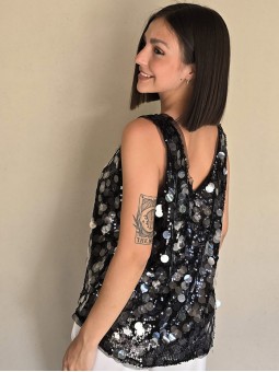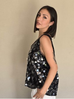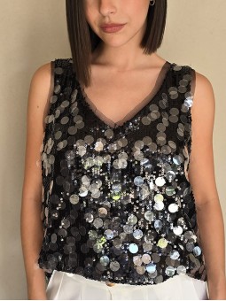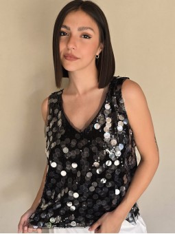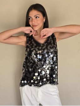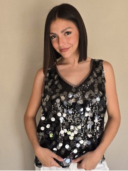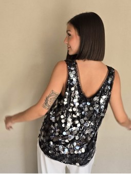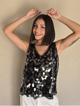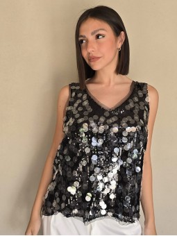 Musculosa importada, cuello v, con lentejuelas bordadas.